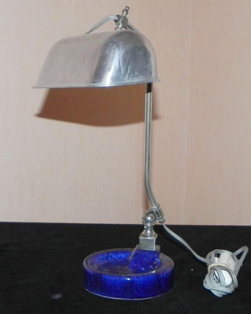 Etrange petite lampe cendrier articulée en céramique et aluminium. Origine inconnue, probablement vers les années 40/50.