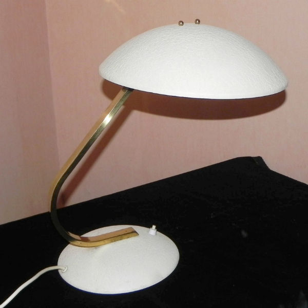 Grande lampe de bureau des années 50 en acier et laiton. Typique d'une production allemande ou des pays de l'Est. Etat parfait.