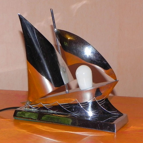Lampe veilleuse en laiton chromé. Design probablement Sudre.