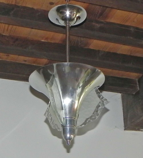 Suspension des années 30 en laiton nickelé et verre pressé dépoli. France.